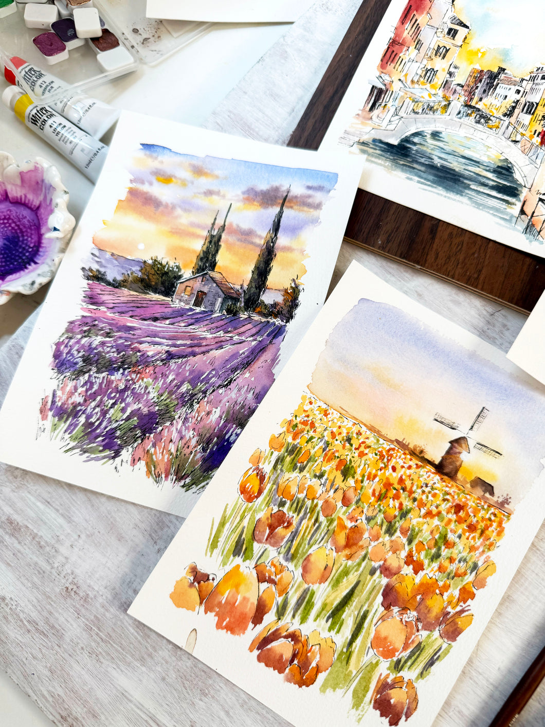 此課程教授以針筆繪畫線條的粗幼輕重及質感的表達。分享風景畫中常用的水彩技巧,掌握隨意的筆法、顏色的漸變、前後景的層次、植物的質感等,非常適合初學的你。